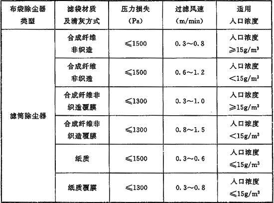 3 過(guò)濾風(fēng)速和除塵效率、濾袋壽命、清灰效果、除塵器壓力損失關(guān)系密切,一般來(lái)說(shuō),較小的過(guò)濾風(fēng)速會(huì)提高除塵效率、延長(zhǎng)濾袋壽命,改善清灰效果。但過(guò)小的過(guò)濾風(fēng)速會(huì)造成設(shè)備型號(hào)偏大,設(shè)備初投資增加。國(guó)家現(xiàn)行的幾項(xiàng)除塵器設(shè)備標(biāo)準(zhǔn)都對(duì)除塵器過(guò)濾風(fēng)速、壓力損失等作了規(guī)定,總結(jié)為表3,根據(jù)表3總結(jié)為本條第3款。